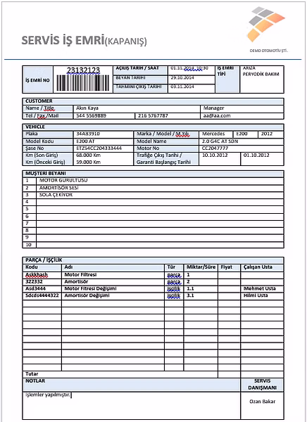 OTOSOFT ÖZEL SERVİS ERP YAZILIMI