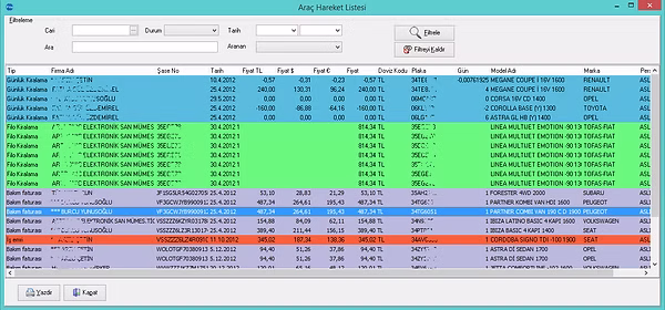 Bayi yıllık sipariş listesi
